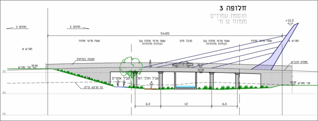 תכנון פארק תעשייה קיסריה הינו תכנון מוטה תח"צ והתאמת רשת הדרכים להולכי רגל ותנועה קלה. לשיפור השימוש בתשתיות האופניים נטעו עצים ותוכננו הצללות לכל אורך המסלול ותוכננה הקישוריות אל הישובים הסמוכים.