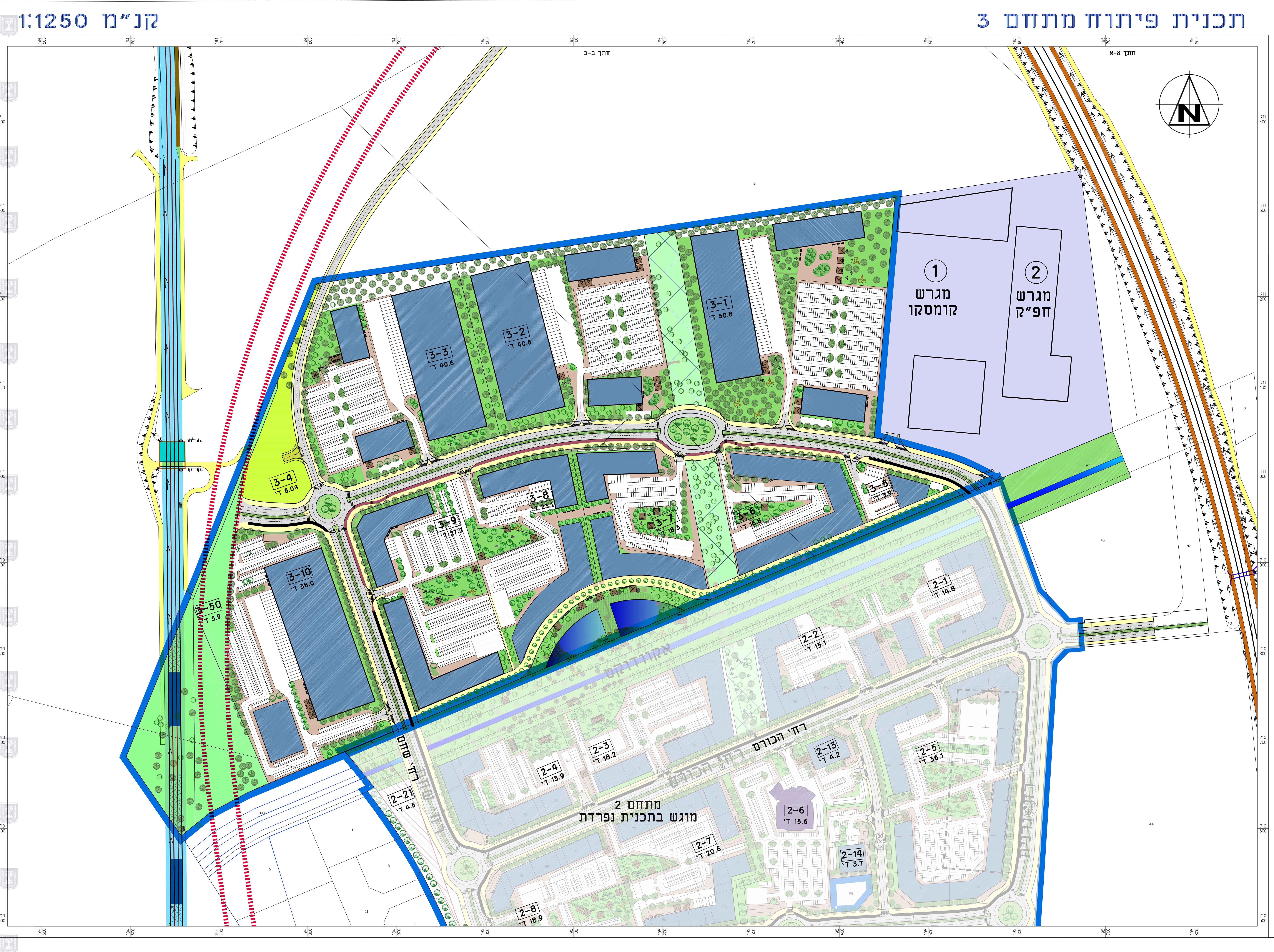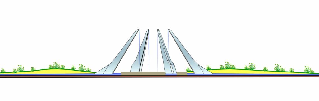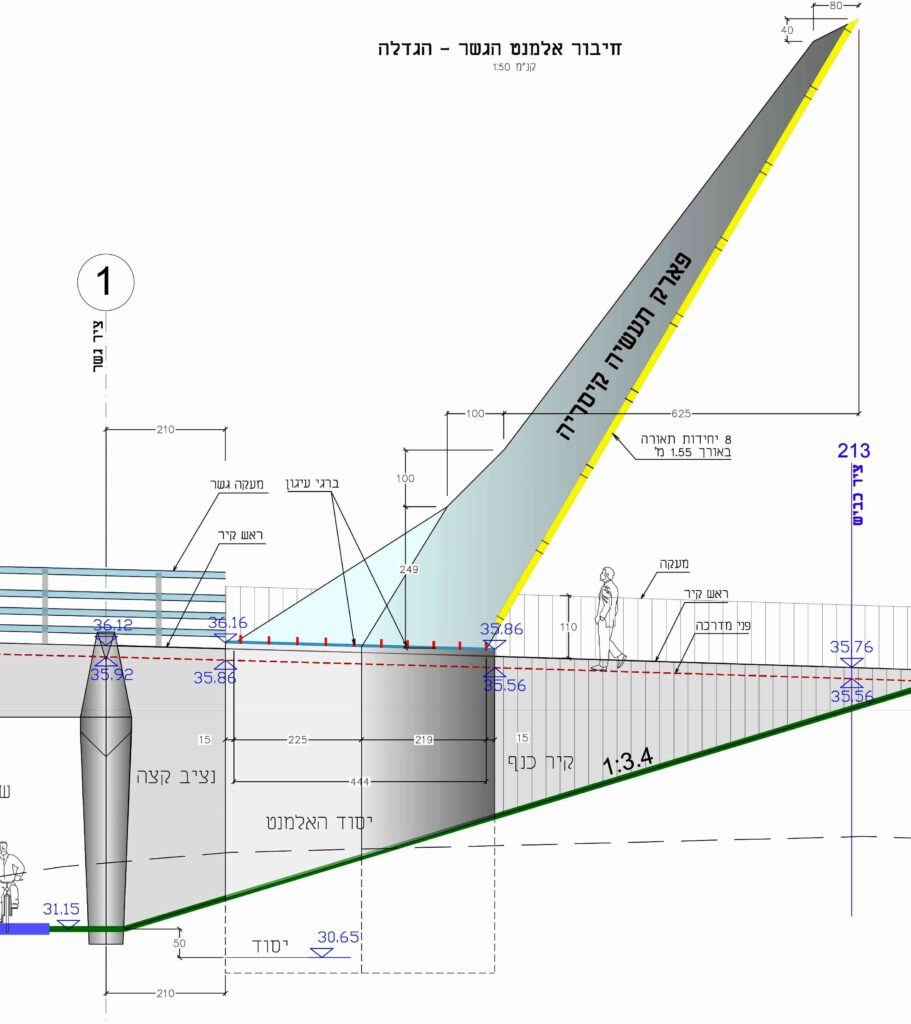 התכנון מחולק לשלושה חלקים אינטגרליים המקושרים זה לזה בפרוגרמה ובתשתיות התנועה השזורות בתוכן. השצפים מחולקים למקטע צפוני ומערבי אקסטנסיביים הכוללים שחזור צומח חולות טבעי לאזור וכן אזור פעילות מרכזי בחלקו הדרומי של התכנון הכולל אזורי ישיבה, מדרכה, מדשאות ופסלים.
