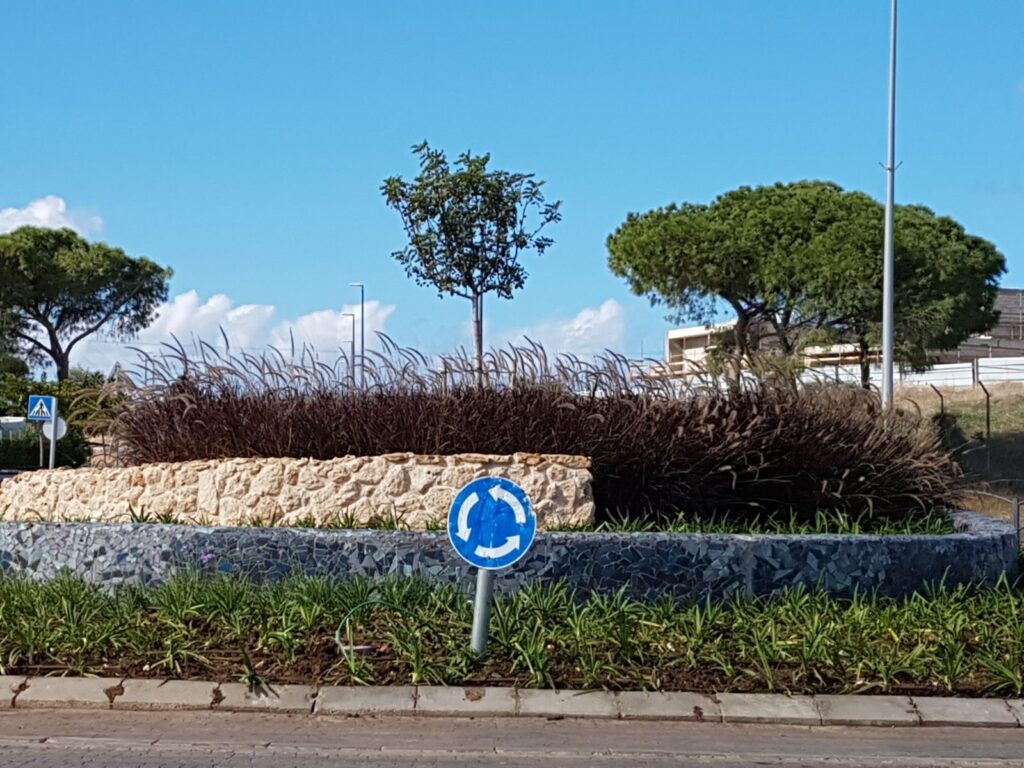 לאורך הכביש חמש כיכרות שמנתבות לכניסות לשכונות ממזרח וממערב, ומאטות את התנועה. דרך הכיכרות מתאפשרת ההליכה בין השכונות. בכיכרות נעשה שימוש בקירות טרסה נמוכים מאבן כורכר פראית שנחצבה במהלך פיתוח השכונות ברכס, ובקירות פסיפס כחולים כאזכור לגווני הים, ממערב לרכס. בכניסה לעתלית חתך הכביש תוכנן כך שהוא משמר את שדירת הוושינגטוניות ההיסטורית שהיא Land mark ברמה ארצית ומסמלת את עתלית.