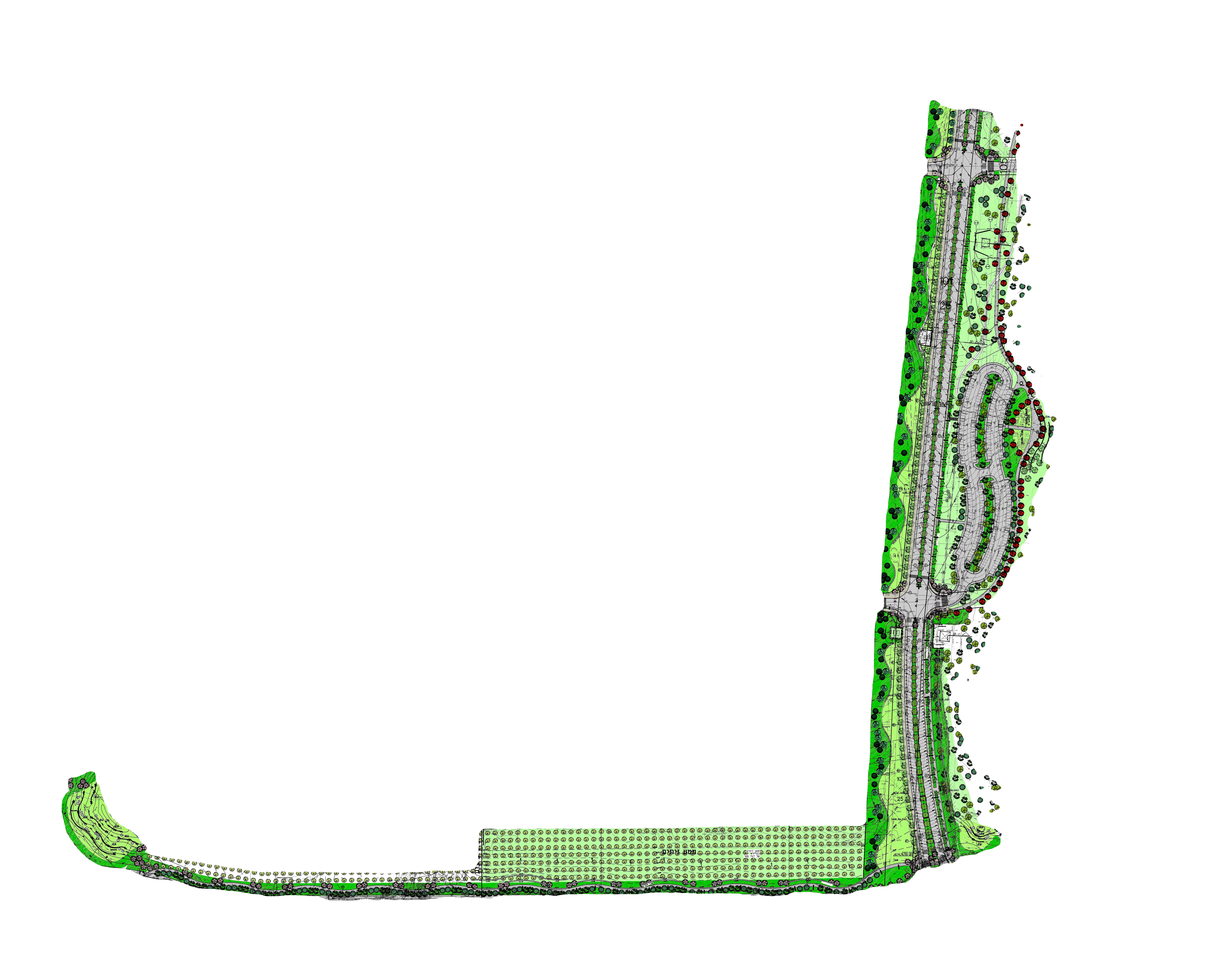 התכנון הנופי כלל תכנון מפלסים בטופוגרפיה ותכניות שיווק למגרשים, עבודות עפר בהיקף נרחב, פיתוח הכבישים והחניונים ופיתוח שצפ"ים בשטח של כ 170 דונם. תכנון השצ"פים כלל פיתוח אינטנסיבי של חניונים, שבילי אופניים (שביל ישראל העובר בתחום התכנית), אזור מתקני כושר, רחבות ישיבה, תמוך קרקע ומסלעות, ושני מוקדי כניסה- ראשי, מתחם הכניסה הראשי כולל אלמנטים פיסוליים עם עקרונות של שימוש בטכנולוגיה לצד חיבור לנוף המקומי.